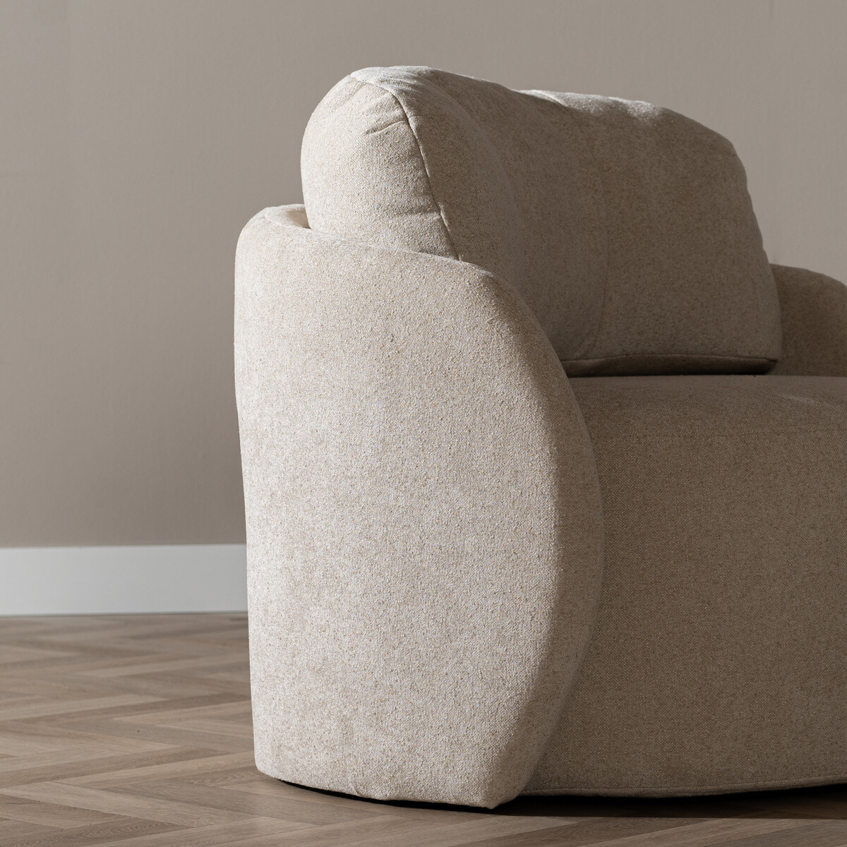 Lerne den Sessel Cali mit Chenille-Stoff in einem dezenten Beigeton kennen – eine stilvolle Ergänzung für jedes Interieur. Mit seinen klaren Linien und dem minimalistischen Design passt dieser Sessel perfekt sowohl in ein urbanes Loft als auch in eine skandinavisch eingerichtete Umgebung. Der Cali-Sessel ist Teil der neuen „Bold Family“-Linie, die für Möbel mit runden Formen und einer raffinierten Ausstrahlung steht.