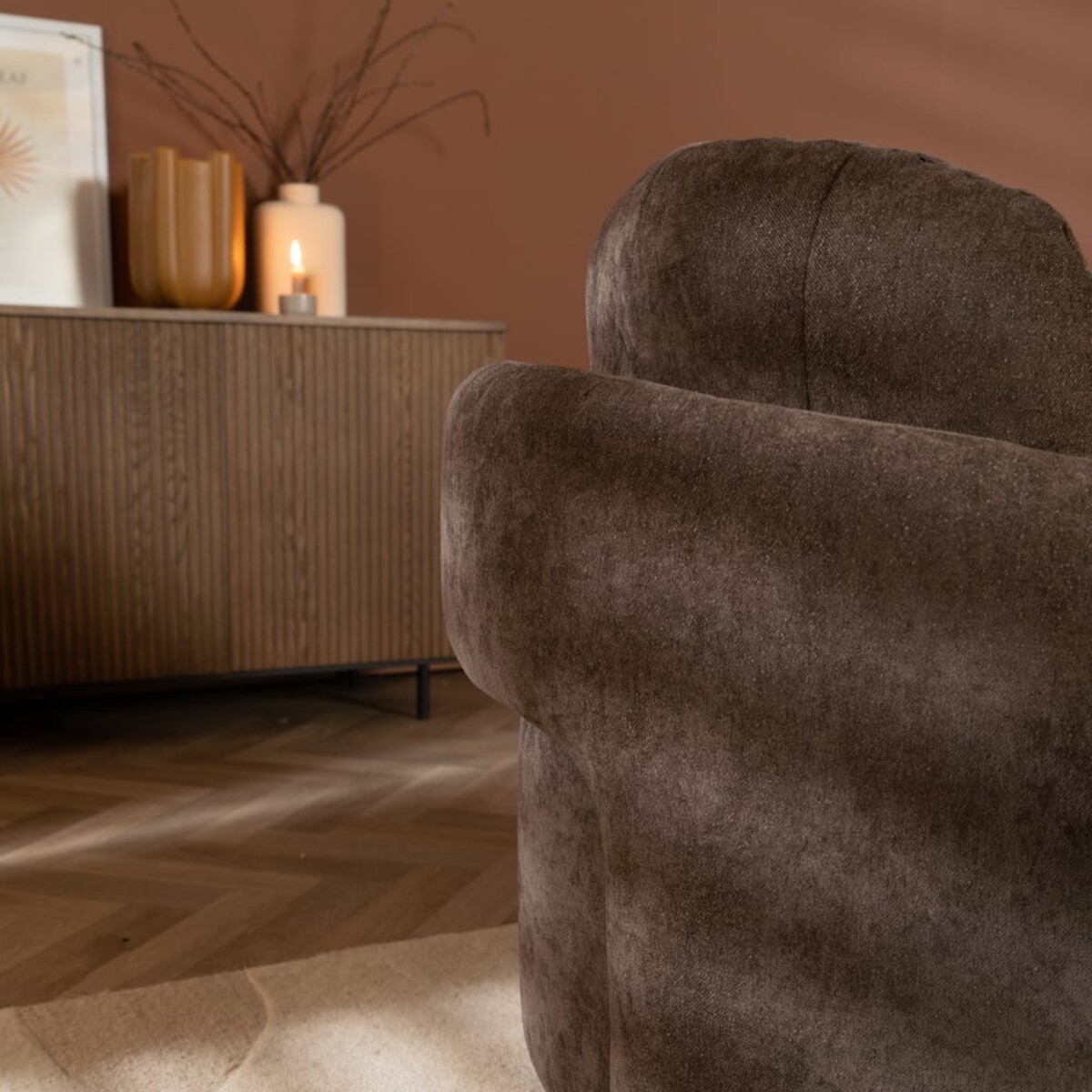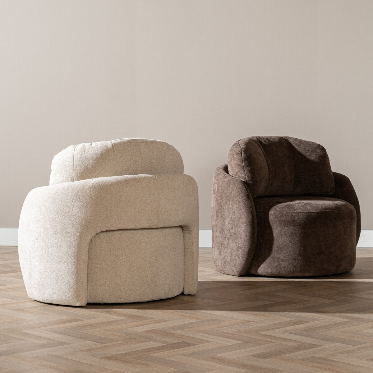 Lerne den Sessel Cali mit Chenille-Stoff in einem Braunton kennen – eine stilvolle Ergänzung für jedes Interieur. Mit seinen klaren Linien und dem minimalistischen Design passt dieser Sessel perfekt sowohl in ein urbanes Loft als auch in eine skandinavisch eingerichtete Umgebung. Der Cali-Sessel ist Teil der neuen „Bold Family“-Linie, die für Möbel mit runden Formen und einer raffinierten Ausstrahlung steht.