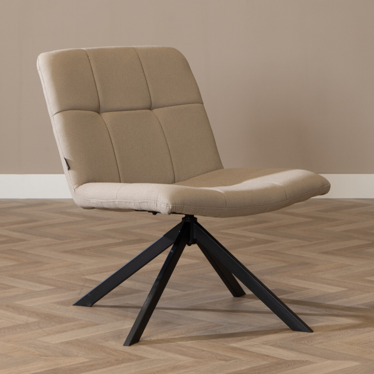 Außerdem ist der Loungesessel mit einem schwarzen, drehbaren Metallgestell versehen, das für ausreichend Stabilität sorgt und dem Sessel ein luxuriöses Aussehen verleiht. Der Sessel ist in jedem Raum flexibel einsetzbar. Du kannst ihn beispielsweise als Lesesessel im Schlafzimmer oder als Fernsehsessel im Wohnzimmer verwenden. Egal wie du dich entscheidest, der recycelte Sessel Eevi verleiht deiner Einrichtung das gewisse Etwas.
