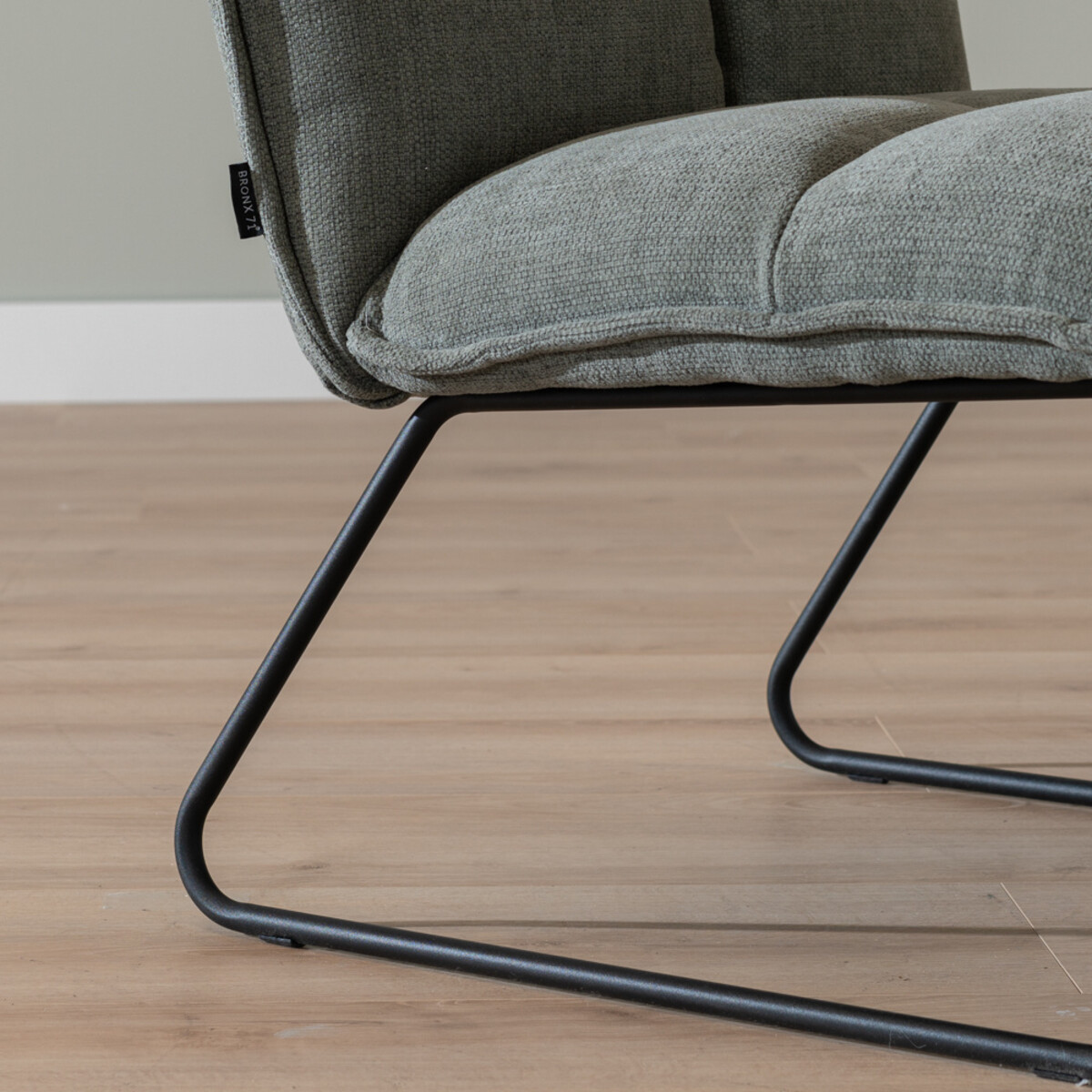 Sessel Joran wurde aus 100% recyceltem Stoff gefertigt. Der Fairmount Stoff ist ein Polyestergewebe, welches aus Plastikflaschen besteht und damit sehr nachhaltig ist. Der Stoff ist genauso robust, widerstandsfähig und langlebig wie normales Polyester. Darüber hinaus ist der Stoff wasserabweisend, was in der Küche und in einem Haushalt mit Kindern ideal ist. Der Stoff des skandinavischen Sessels lässt sich leicht mit einem leicht feuchten Tuch abwischen. Wir empfehlen, den Sessel mit unserem Textil Pflege Kit zu behandeln, das den Sessel noch besser vor Flecken schützt. Das Gestell des Sessels ist aus schwarzem Metall gefertigt, was den Sessel ebenfalls robust aussehen lässt.