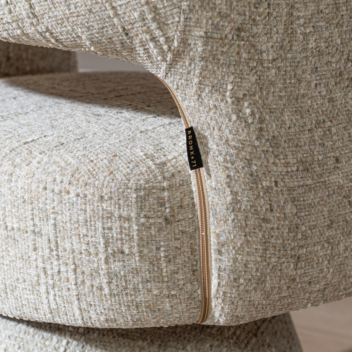 Der Sessel ist mit dem Stoff Cestino bezogen – eine vielseitige und langlebige Wahl. Das Material besteht aus 95 % Polyester und 5 % Baumwolle, was eine perfekte Balance zwischen Robustheit und Weichheit bietet. Zudem ist der Stoff wasserabweisend und leicht zu reinigen.