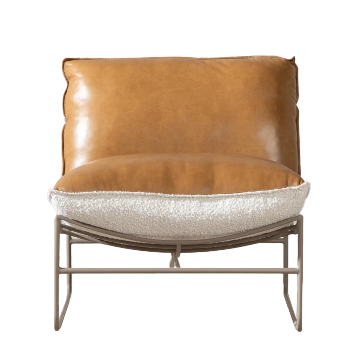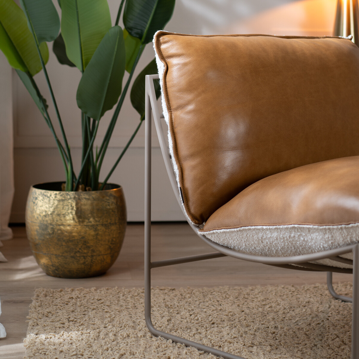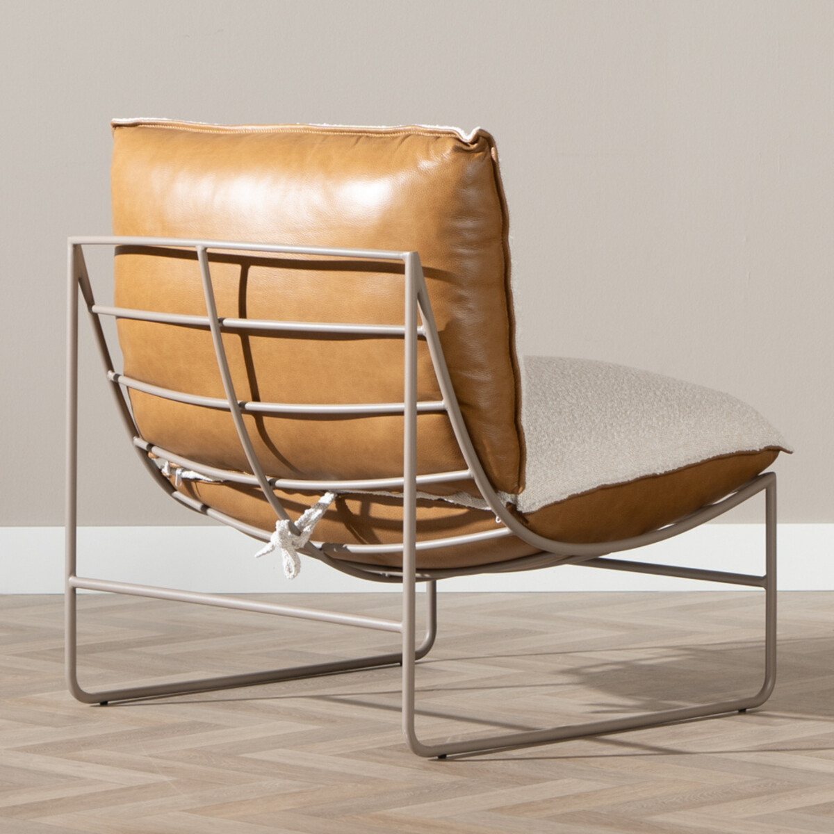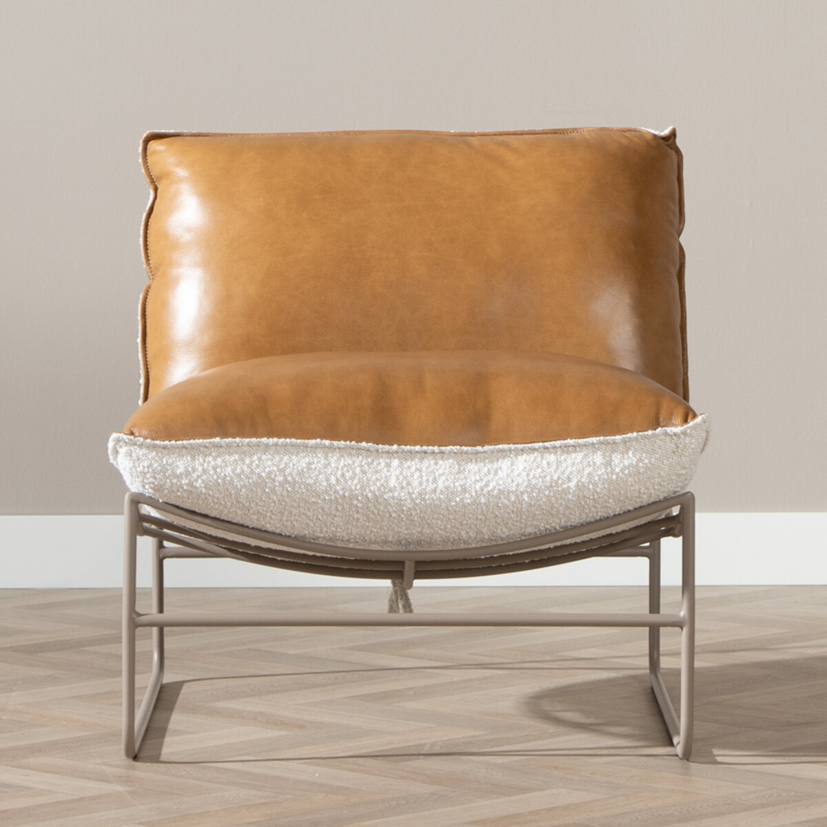 Sessel Maceo Leder/ Bouclé cognac/ beige
