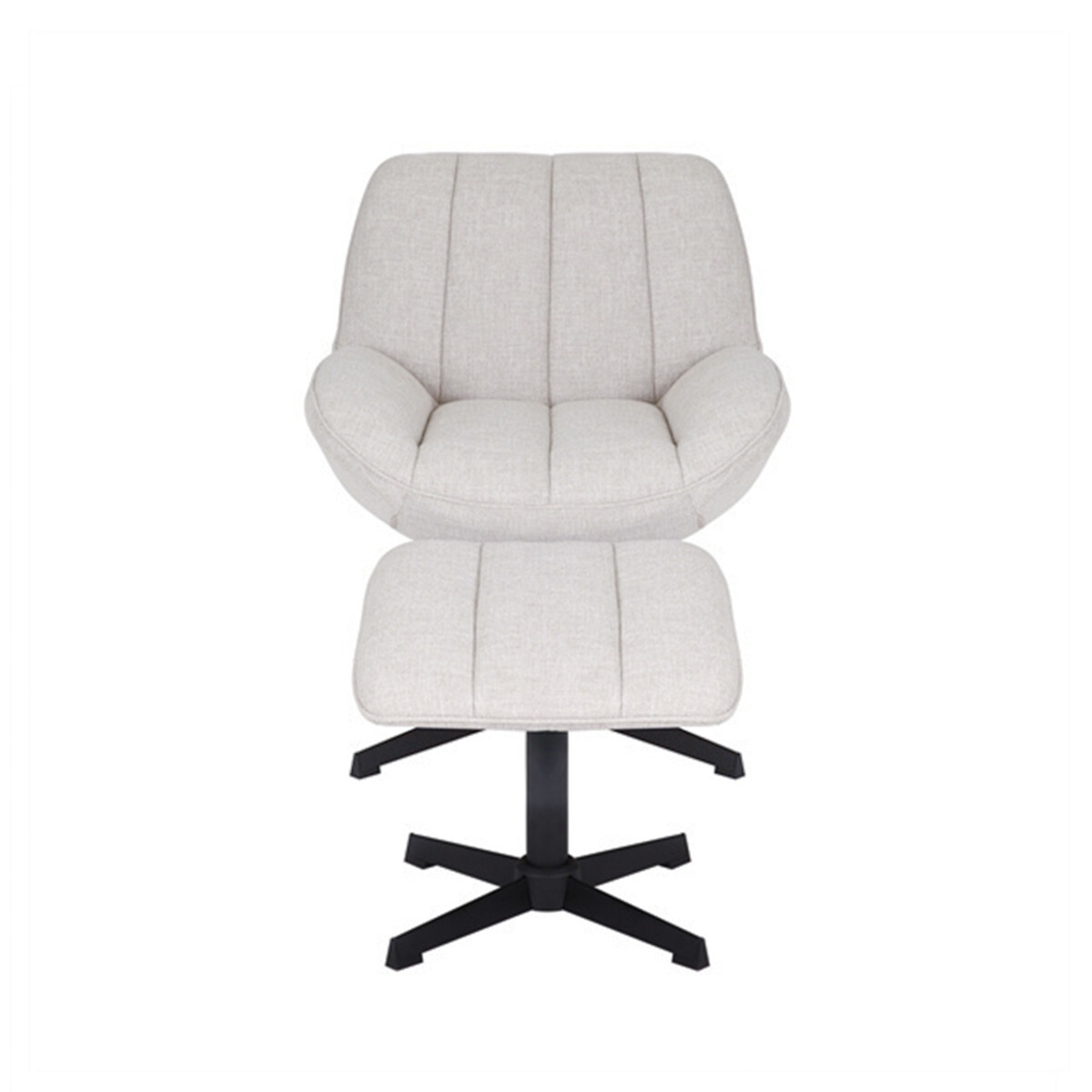 Das Besondere an dem Material dieses Polstersessels ist der 15%ige Leinenanteil neben dem Polyesterstoff. Der Stoff ähnelt einem Boucléstoff und ist wasser- sowie schmutzabweisend. Dadurch ist der Relaxsessel sehr pflegeleicht und lässt sich einfach mit einem warmen, angefeuchteten Tuch abputzen. Das drehbare Gestell ist aus einem mattschwarzen Metall gefertigt. Der Hocker ist in der Lieferung inbegriffen, daher ist es nicht möglich, den Fußhocker und den Sessel separat zu bestellen.