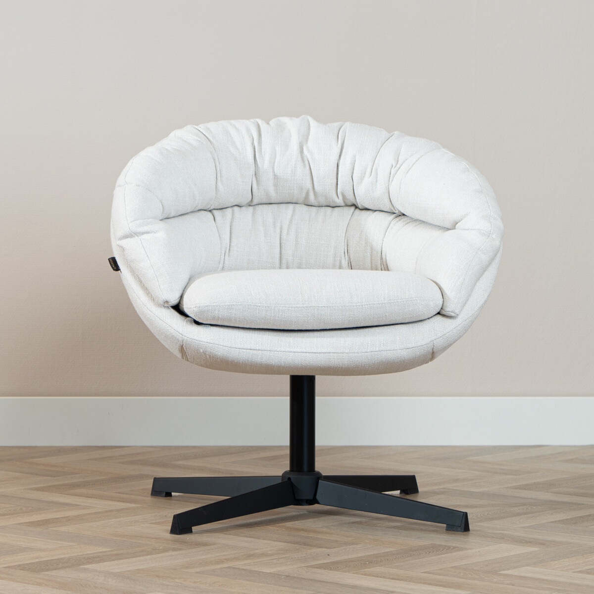 Der drehbare Sessel Porto ist ein gemütlicher Loungesessel mit einer runden Sitzfläche, der gleichzeitig Ruhe und Eleganz ausstrahlt. Der weiche Bezug mit Leinenanteil ist ideal, um darauf nach einem langen Tag zu relaxen. Der Relaxsessel hat eine runde Form, die das moderne Design des Sessels unterstreicht. Egal, ob du eine Leseecke mit einem neuen Lesesessel einrichten oder einfach nur ein Statement setzen möchtest: Dieser gepolsterte Sessel ist vielseitig einsetzbar.