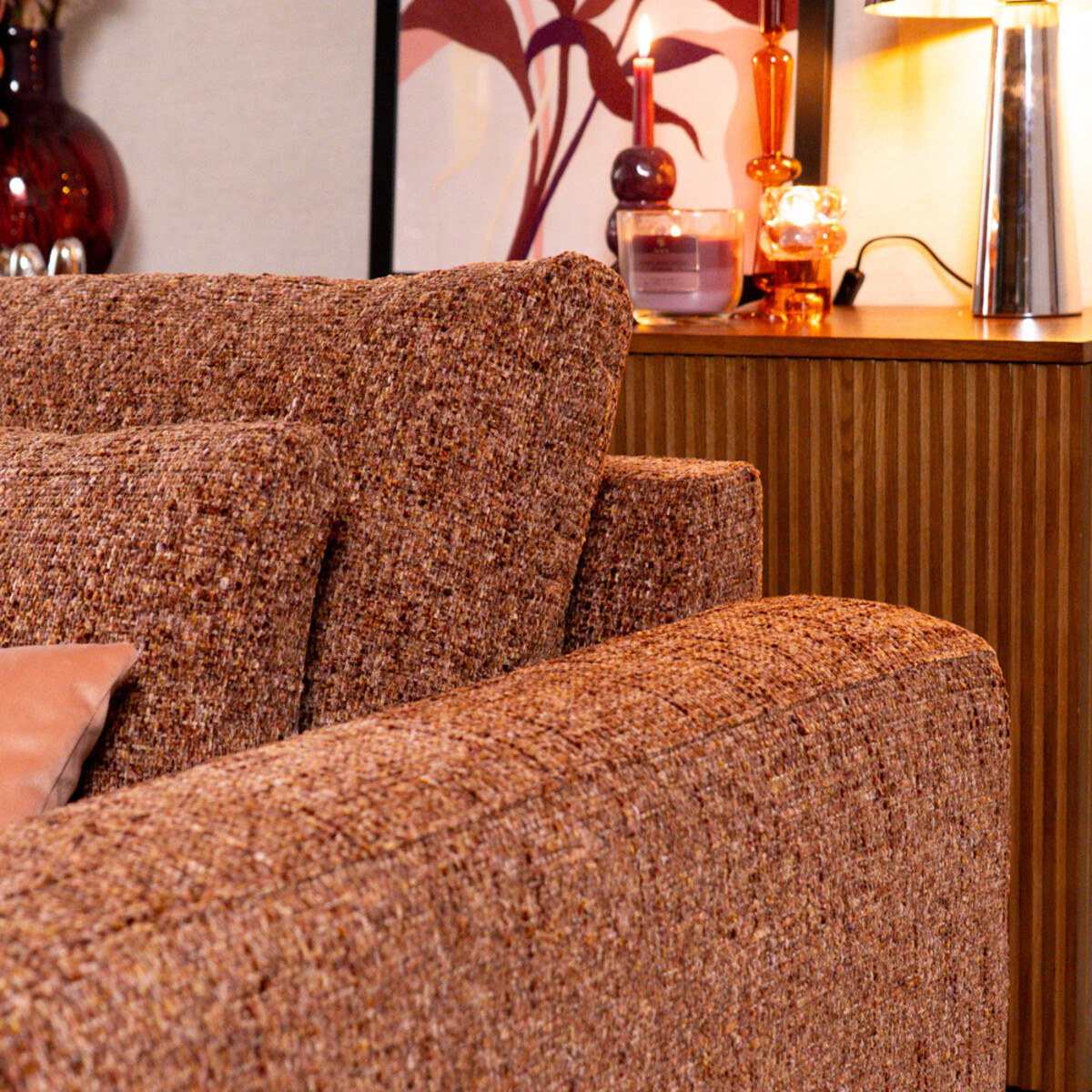 Das U-Sofa Kyle ist mit Miscanto Chenille bezogen, einem hochwertigen Stoff aus 100 % Polyester. Chenille zeichnet sich durch eine volle, weiche Struktur aus und bietet besonderen Sitzkomfort. Der Stoff hat einen Martindale-Wert von 70.000, was bedeutet, dass das Sofa sehr langlebig und für intensive (tägliche) Nutzung geeignet ist. Der Stoff ist zertifiziert und erfüllt die Sigarettentest-Norm (flammbeständig). Der Rahmen ist robust mit Nosag-Federn, Holzplatten sowie Buchen- und Kiefernholz ausgeführt, wodurch das Sofa eine lange Lebensdauer und eine stabile Basis erhält.