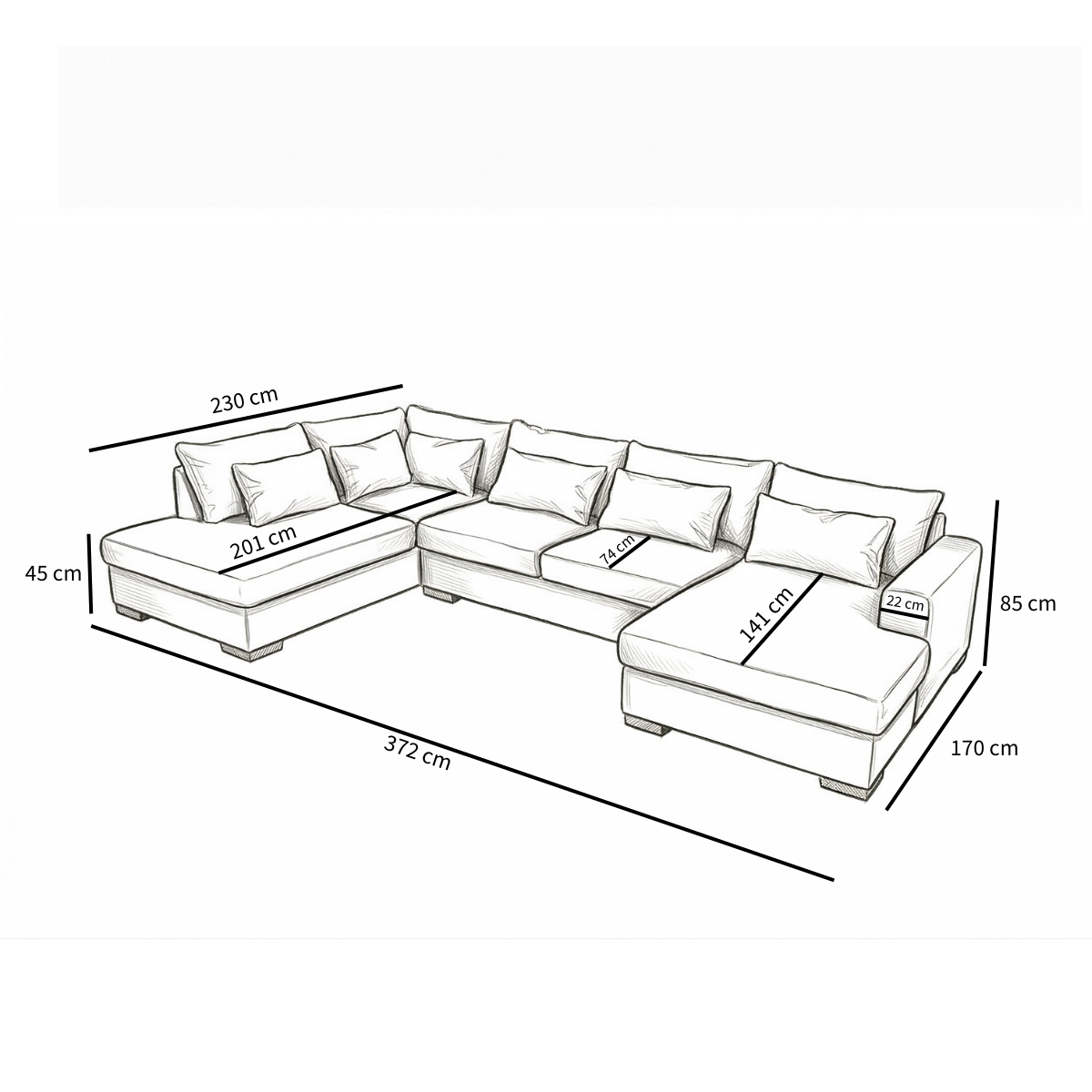 Das großzügige U-Form-Sofa ist ideal für alle, die Komfort und modernes Design lieben. Das große Sofa bietet viel Platz für die Familie und überzeugt durch eine klare, zeitlose Linienführung, die zu unterschiedlichen Einrichtungsstilen passt. Die breiten Sitze und die bequemen Lounges eignen sich perfekt für entspannte Abende mit Freunden. Der weiche Chenille-Stoff sorgt dafür, dass du viele Jahre Freude an diesem Sofa haben wirst.